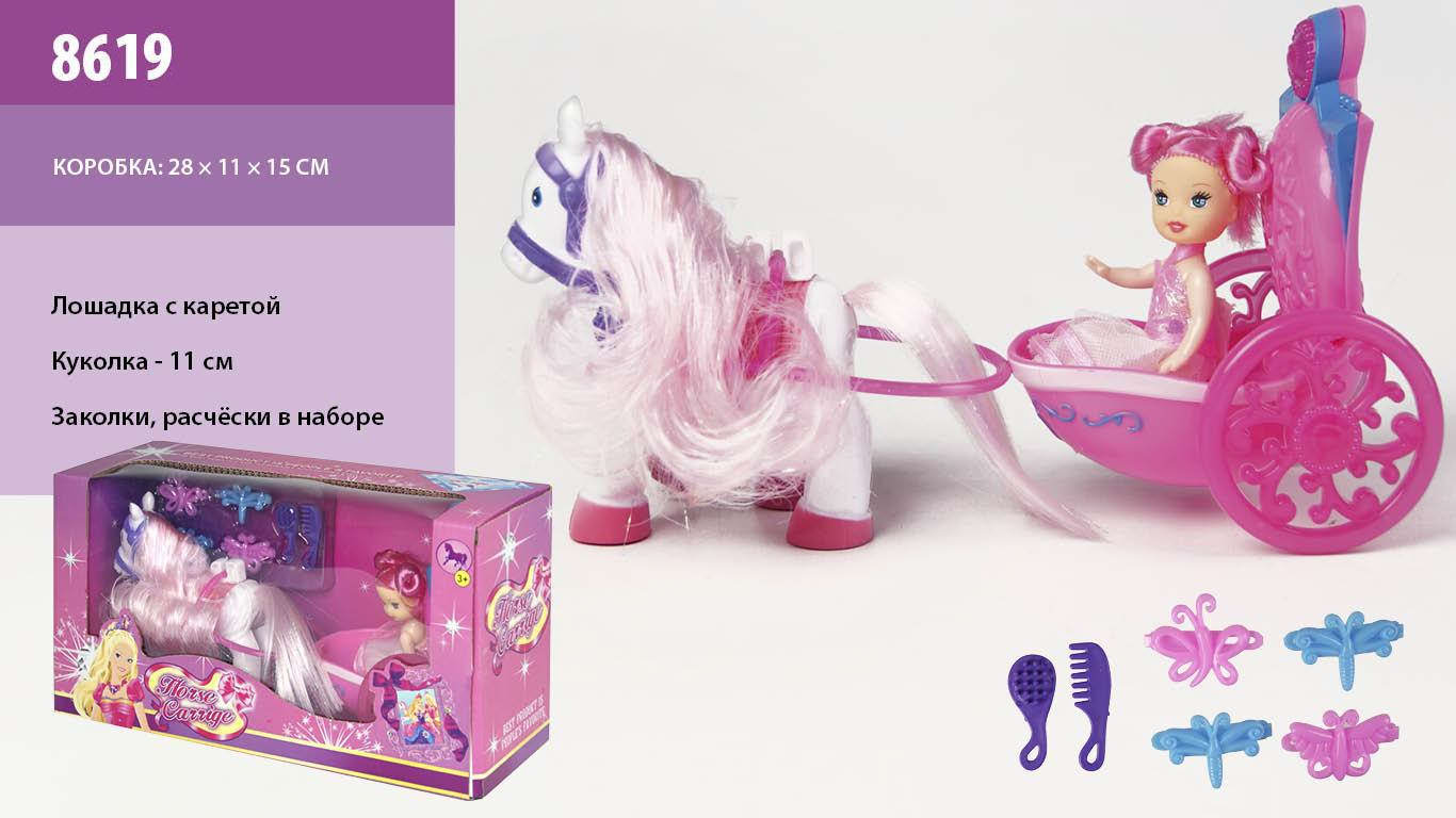 Комплектация: Карета с лошадкой, куколкой, расческой, зеркальцем