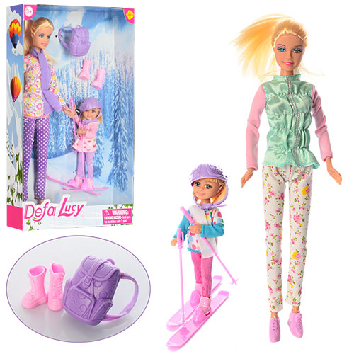 Комплектация: Кукла, дочка 3см, лыжи, рюкзак