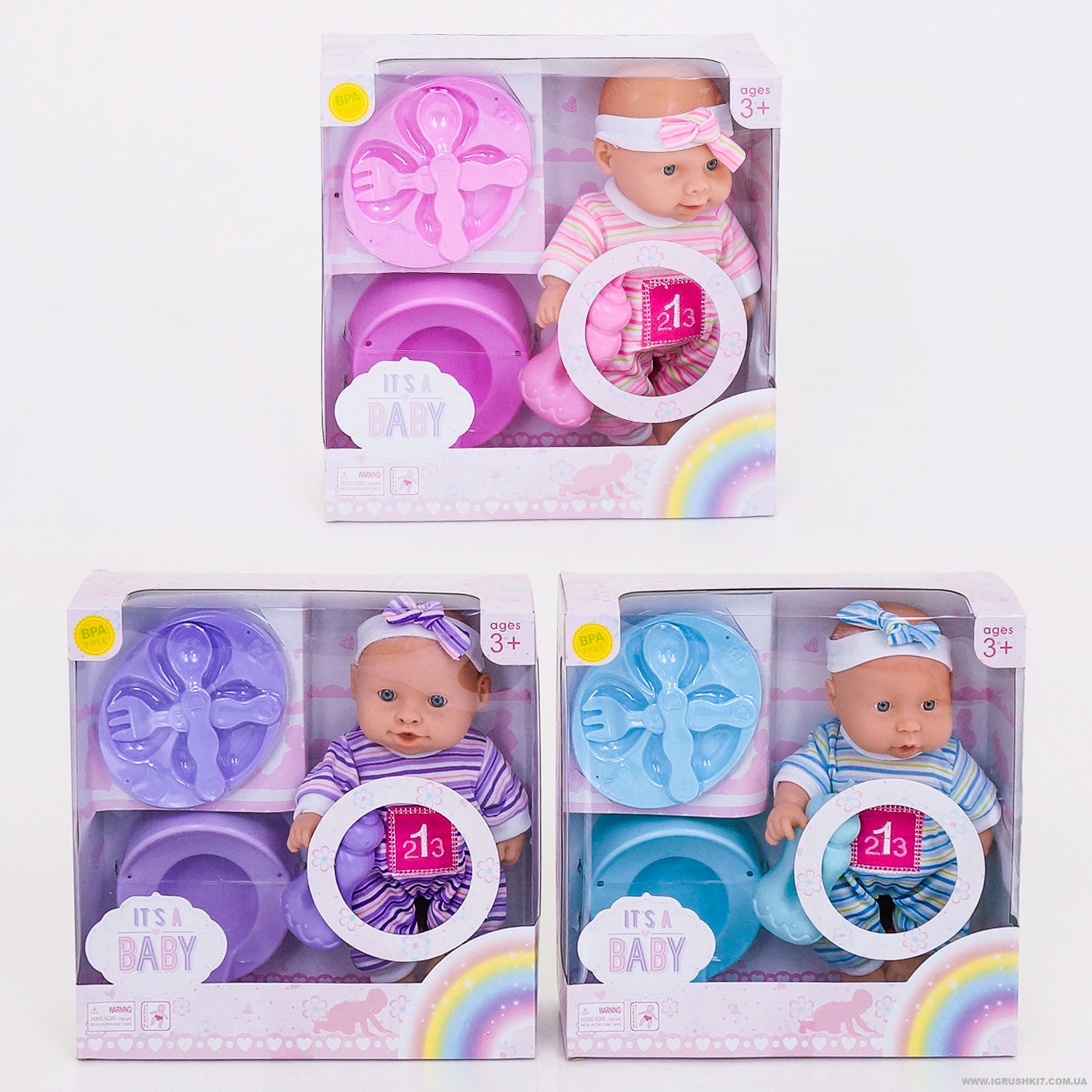Комплектация: Пупс,набор посуды,горщок и соска